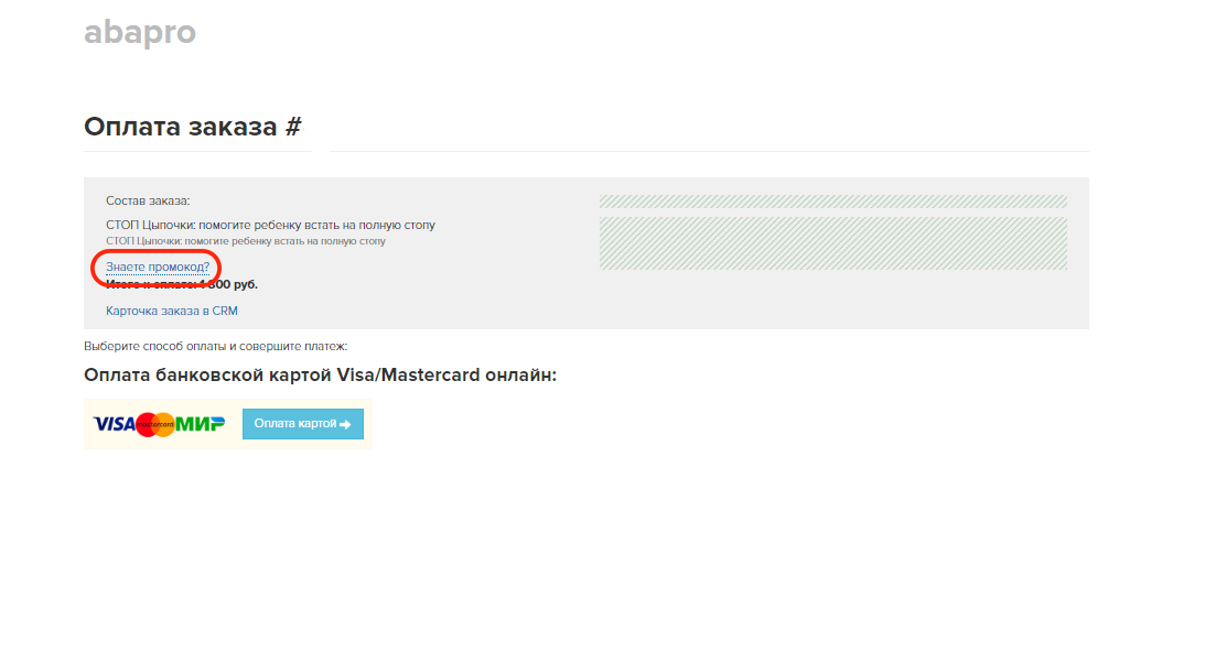 При оплате, в окне подтверждения заказа необходимо нажать на кнопку "Знаете промокод?", после чего в появившееся поле ввести промокод и нажать применить.